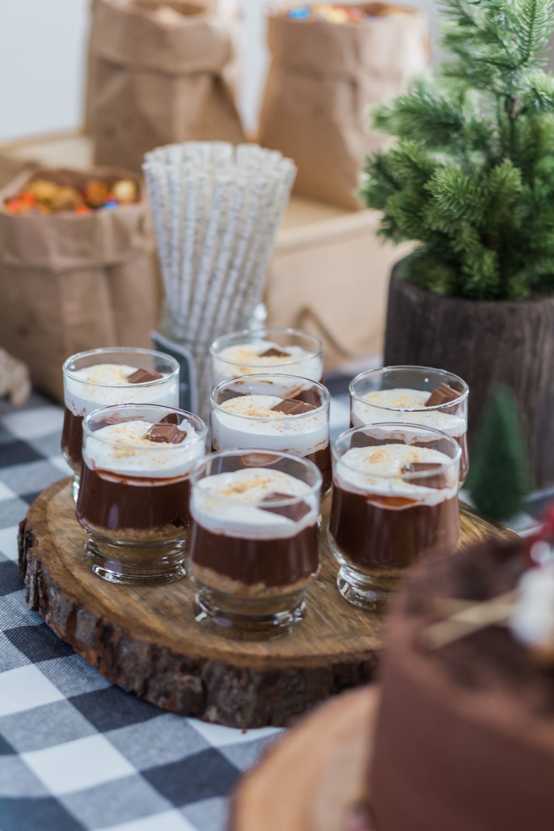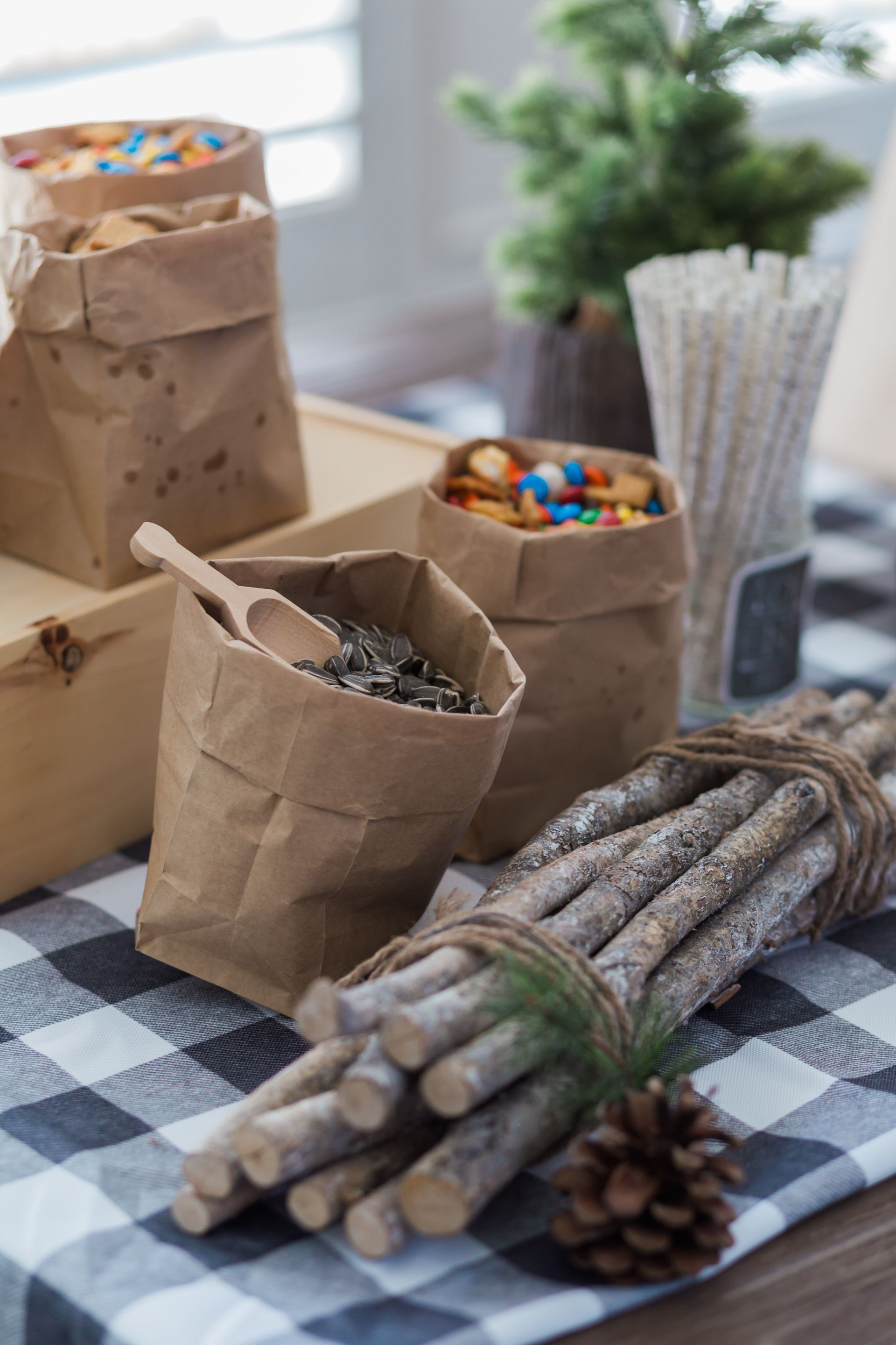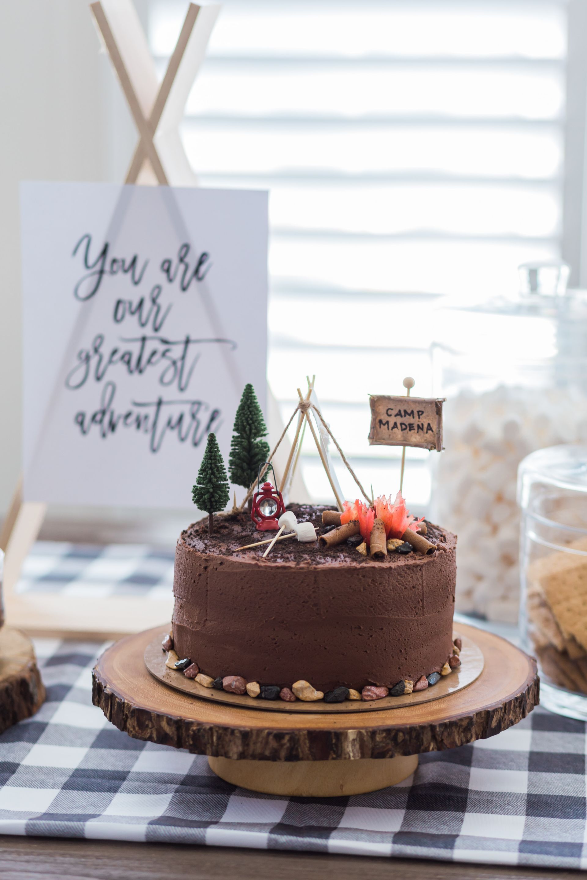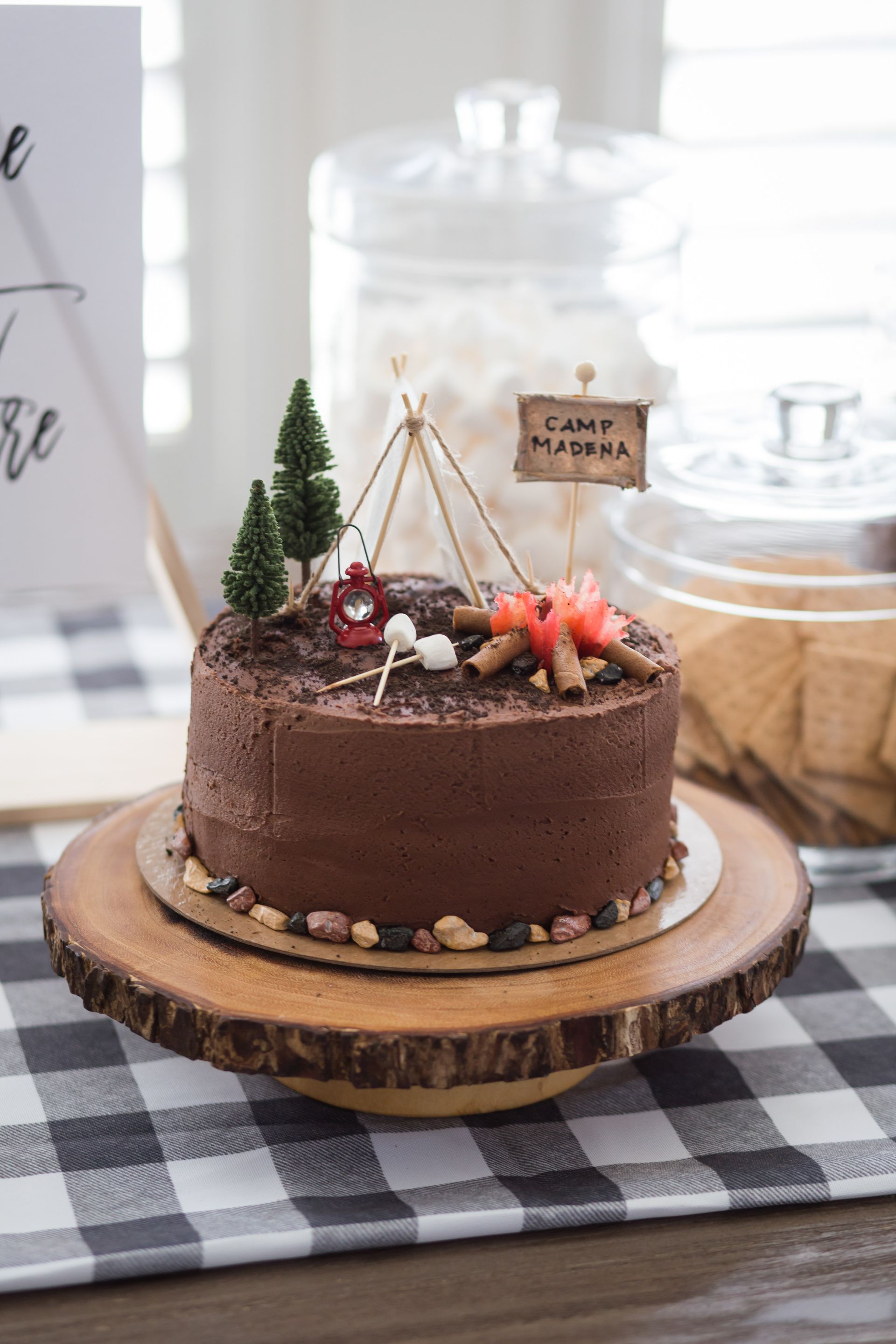 My favorite part about this party was the cake. The details were everything! Like seriously how stinking adorable did this turn out? Her and I made it together. We melted lifesavers in the oven to make the flames, rock candy around the border, Oreo crumbs as dirt, chocolate wafers as logs and mini skewers for our structure. Mini smore pudding cups, "campfire snacks", and rock bingo adding to the rustic cozy vibe.