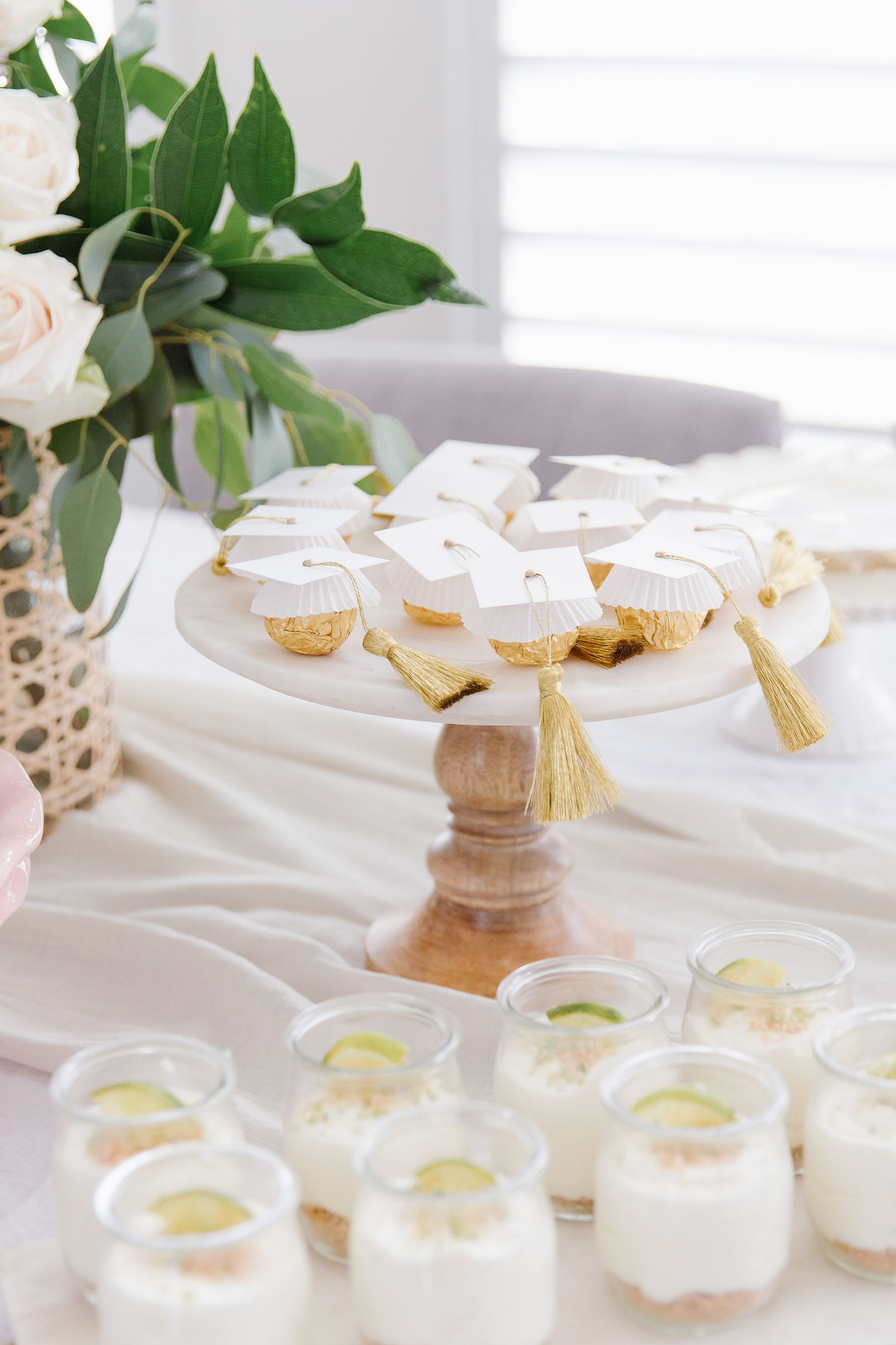 When my oldest daughter graduated I knew I wanted to do something special to celebrate. We enjoyed a a lunch with her close friends and their mothers. We prepared a beautiful spread of lunch items as well as some her favourite desserts! The Ferro Roche graduation favours were an absolute hit! Check out how I made them here.